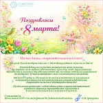 С 8 Марта, милые дамы! Говорят, что весна начинается с первой капели, но мы точно знаем: она начинается с вашей улыбки. Пусть эта весна подарит вам море цветов, улыбок и приятных сюрпризов! Оставайтесь такими же неповторимыми и счастливыми! С искренним уважением и восхищением, коллектив Госэкспертизы Челябинской области.