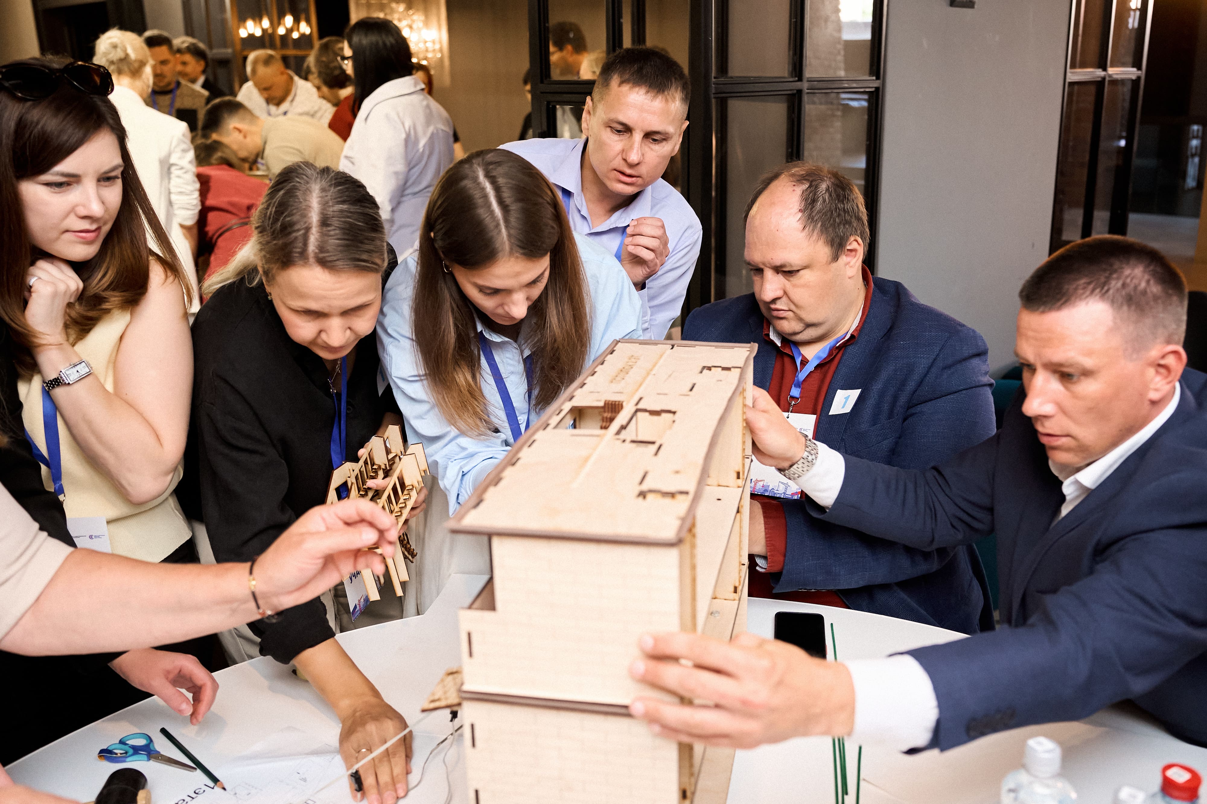Кроме того, специалисты Госэкспертизы Анастасия Нагорная, Елена Заикина и Дмитрий Фенченко приняли непосредственное участие в игре в составе команд. Они вместе с другими участниками (проектировщиками, строителями, представителями власти) работали над созданием концепций домов и их макетов, применяя свои профессиональные знания на практике в рамках игрового формата.